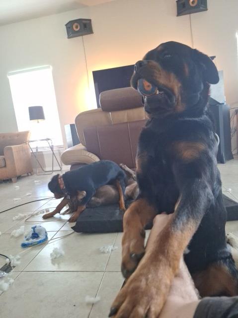 Draco is an outstanding, 2 1/2 year old dominant, yet discerning male at the top of his pedigree, 105lbs, lean... eats 6+ cups a day of high quality lamb based kibble, dewormed, vet checked... both AKC and CKC registered, and from Gold Medal winning parents himself, he has already proven his potency with a litter of 9 beautiful healthy pups who have clearly gained both his demeanor and intellect. 239 738 5652