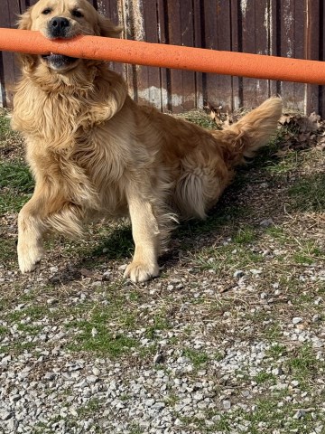 Samson is a 2-year-old, fully pedigreed, AKC registered, OFA Certified, and proven Golden Retriever. He is sweet and excellent with children. Handsome in appearance with strong structure and a beautiful coat, he is equally athletic and eager to please. He comes from a long line of Goldens raised with care, socialization and purpose, producing well-rounded dogs that thrive in both family and active lifestyles. With approved females, we intend to carry on premium genetics with the goal to preserve the integrity of the Golden Retriever breed.