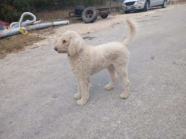 Prince is an F1b cream Goldendoodle with a wonderful temperament and strong therapy-quality genetics. His mother is a registered therapy dog serving the community through TASA (Therapy Animals of San Antonio). His grandparents are purebred Golden Retriever and purebred Poodle (AKC). Prince is low-shedding, semi-curly, and ideal for producing family-friendly, allergy-friendly puppies. Available to approved females. Located in the San Antonio / Helotes / Lakehills area.