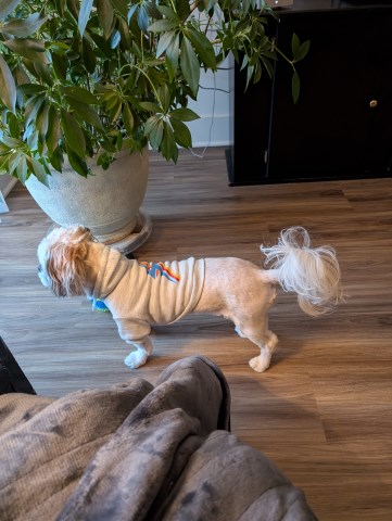 Recently, he went and got my shoe for me when he saw I was in the bathroom getting ready. I always tell him when I am getting ready to go somewhere. He really delighted me when I saw that he brought me my shoe!