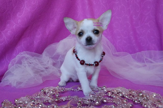 We’re a litter of adorable Chihuahuas, full of personality, charm, and endless love! When we turned 4 weeks, we started outdoor potty training and have been socialized from day one.