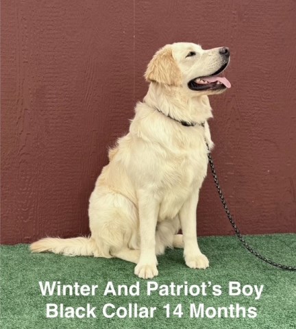 The Dam Winter is a white English female. The Sire Patriot is a long hair champagne English male. Patriots panel testing shows clear for 24 genetic diseases carrier of STGD. There are 6 pups in the litter. We have 1 boy available for $500. He is ready to go home. He is a Long Hair Lab. He has completed his puppy series of vaccines except rabies.