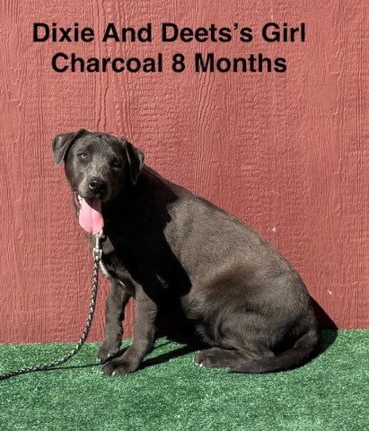 The Dam Dixie is a 3/4 English and 1/4 American yellow female. The Sire Deets is a 3/4 English and 1/4 American black male. Deets panel testing shows clear for 20 genetic diseases carrier of STGD and 1 Protective gene for CT. There are 8 pups in the litter. We have 1 charcoal girl available for $800. She is ready to go home. She has completed her puppy series of vaccines except rabies.