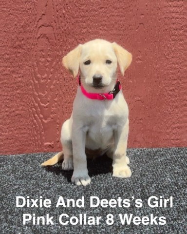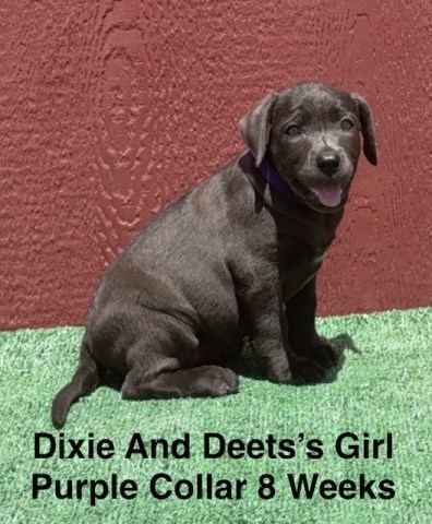 The Dam Dixie is a 3/4 English and 1/4 American yellow female The Sire Deets is a 3/4 English and 1/4 American black male. Deets panel testing shows clear for 20 genetic diseases carrier of STGD and 1 Protective gene for CT. There are 8 pups in the litter. We have 1 yellow girl, 1 charcoal girl, 3 yellow boys, and 1 black boy available. The charcoal female pup is $1800, yellow pups are $1500, and the black boy is $1200. The puppies are ready to go home.