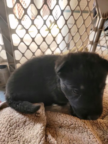 AKC-registered working-line German Shepherd pup raised for clarity, drive, and handler focus. Out of Abel × Kimber (Xarma de Ola-Zar).