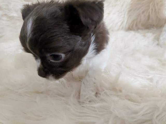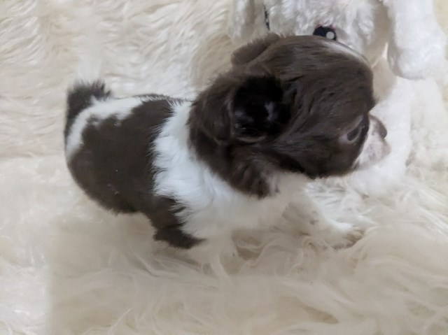 Meet Faith , a stunning exclusive beautiful apple head Chocolate n White Long coat female chihuahua.