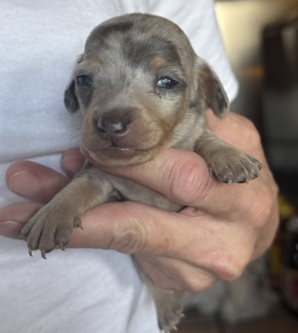AKC Mini Dachshund Puppies! M short hair Cream, F short hair black and tan, M short hair dapple, F Isabella short hair, M long hair blue and tan. All come with a vet health check, first shots and full AKC registration. They will be well socialized and potty training begun. Ready 1/1/2026