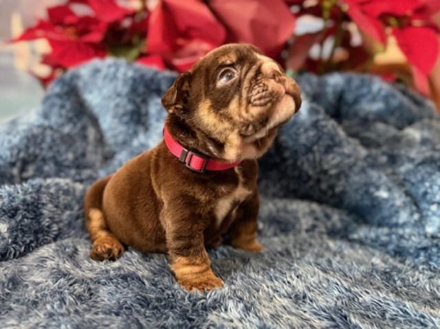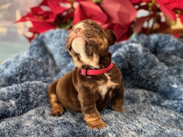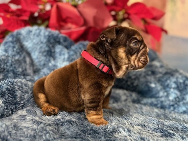 English Bulldog, F, Pink Collar, RUNT, choc tri - Oologah, Oklahoma