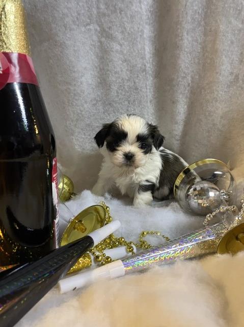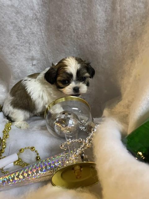Beautiful CKC Shih Tzu puppies with gold and white coats.
