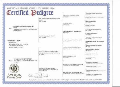 Pedigree Attached Dob 08/28/2019