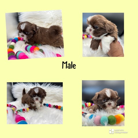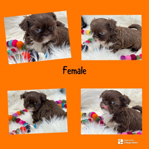 Dad is a AKC liver /white green eyes ,10 pounds Shih tzu.