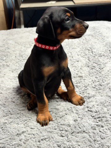 These females are playful, affectionate, and incredibly adorable, always eager to explore, cuddle, or engage in playtime. Dobermans are known for their loyalty, intelligence, and protective instincts, making them outstanding family dogs as well as excellent companions for those looking for a devoted, trainable breed.
