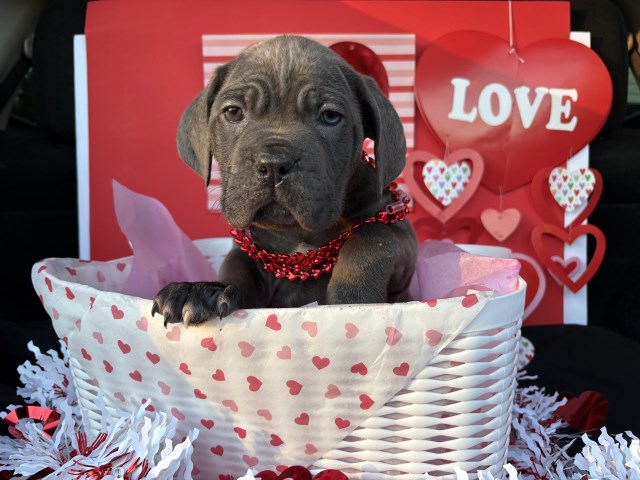 Puppies will be available Feb.14th 1 female and 1 male Black; 4 female and 2 males Grey/Blue!! These are our love puppies. If you are looking for a companion that will be loving and loyal for life, then you found us for a reason! Our puppies have been raised in love and introduced to different scenarios; loud noise, kids ages1.5-15 years old, car rides, walks, started potty training. Along with all this are there amazing temperament. Mixed with the quiet an observant mother and loving and protective father; we truly have the best Cane Corso puppies!