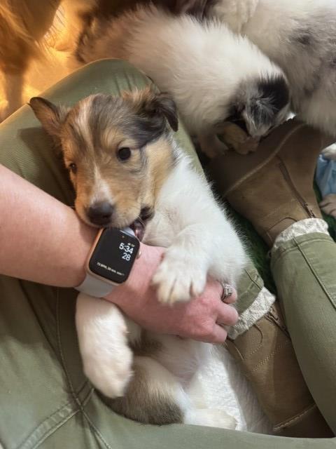 Limited AKC registered rough collie puppies. Come with 6 week health check, UTD on shots and worming, CEA testing. Mom on site. Mom and dad are both calm, alert, attentive. Ready to go home 2/15/26. Located in Richmond, KY. Males and females available. 1 male blue merle, 1 male tri-colored, 1 female tri-colored, 3 female sables. $1200