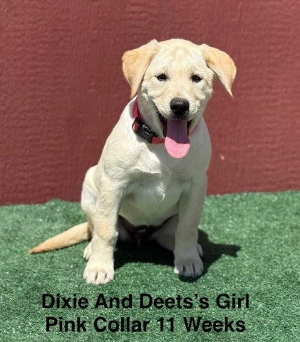 The Dam Dixie is a 3/4 English and 1/4 American yellow female. The Sire Deets is a 3/4 English and 1/4 American black male. Deets panel testing shows clear for 20 genetic diseases carrier of STGD and 1 Protective gene for CT. There are 7 pups in the litter. We have 1 yellow girl, 1 charcoal boy and 1 black boy available. The yellow and charcoal pups are $2000 each, and the black pup is $1500. The pups are ready to go home.